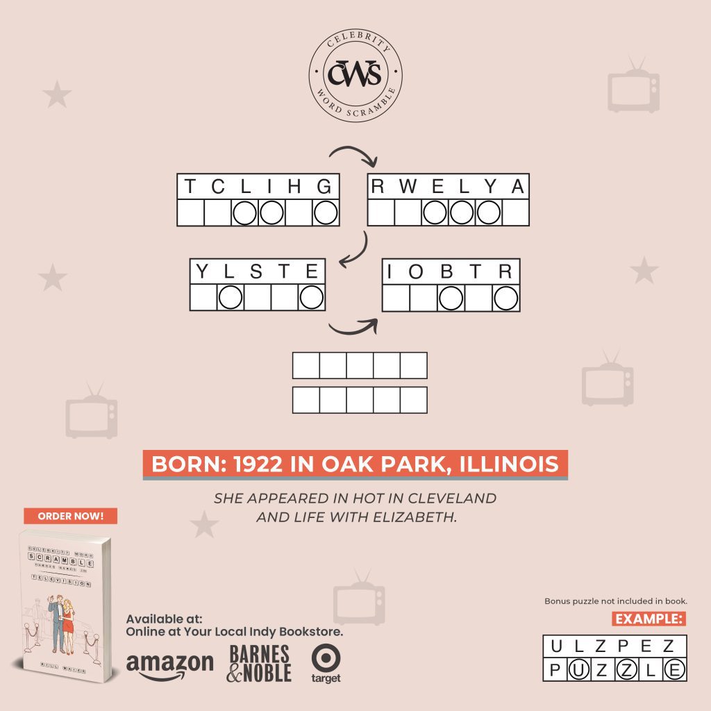 (Puzzle#1) Solution: Puzzle Words First Word: GLITCHSecond Word: LAWYERThird Word: STYLEFourth Word: ORBIT SCRAMBLED: ITHWYETEBT First Name: BETTY Last Name: WHITE